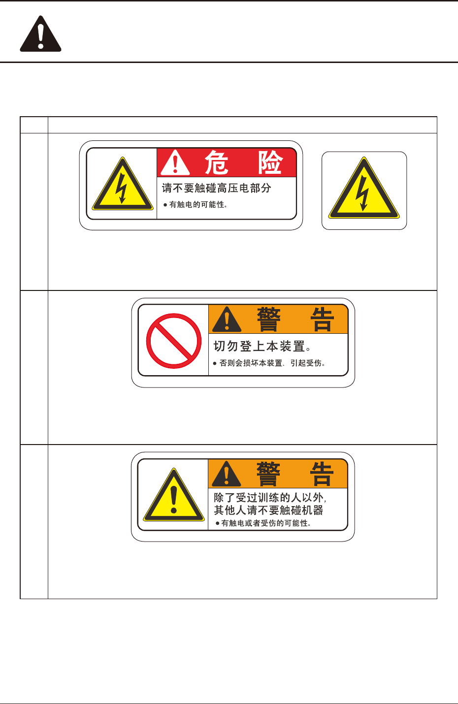 除了装置运行操作人员或受过训练的人以外,其他人请不要触碰机器。