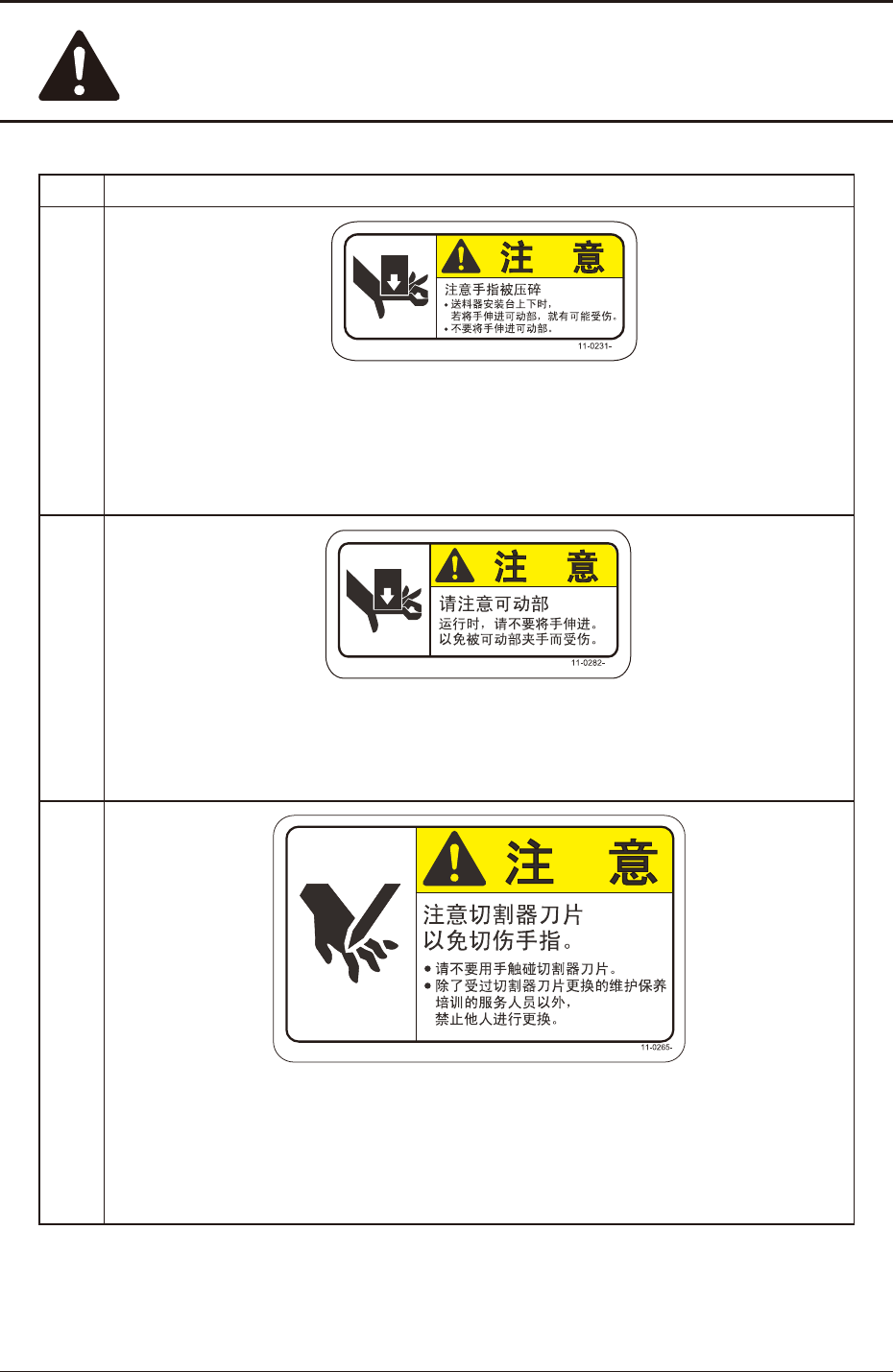 除了受过切割器刀片更换的维护保养培训的服务人员以外,禁止他人进行