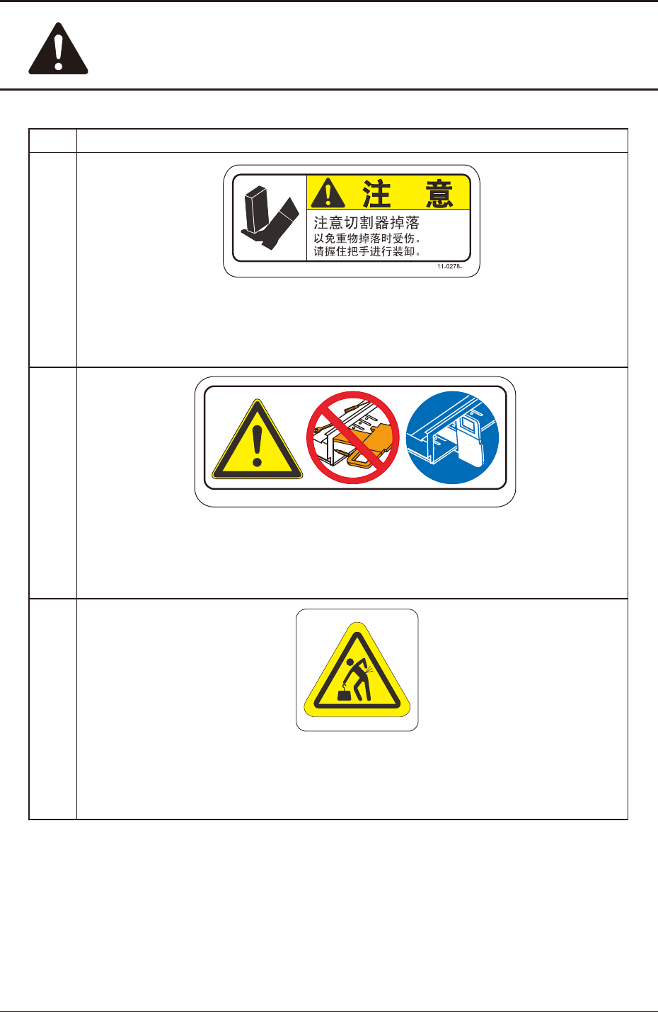 除了受过切割器刀片更换的维护保养培训的服务人员以外,禁止他人进行