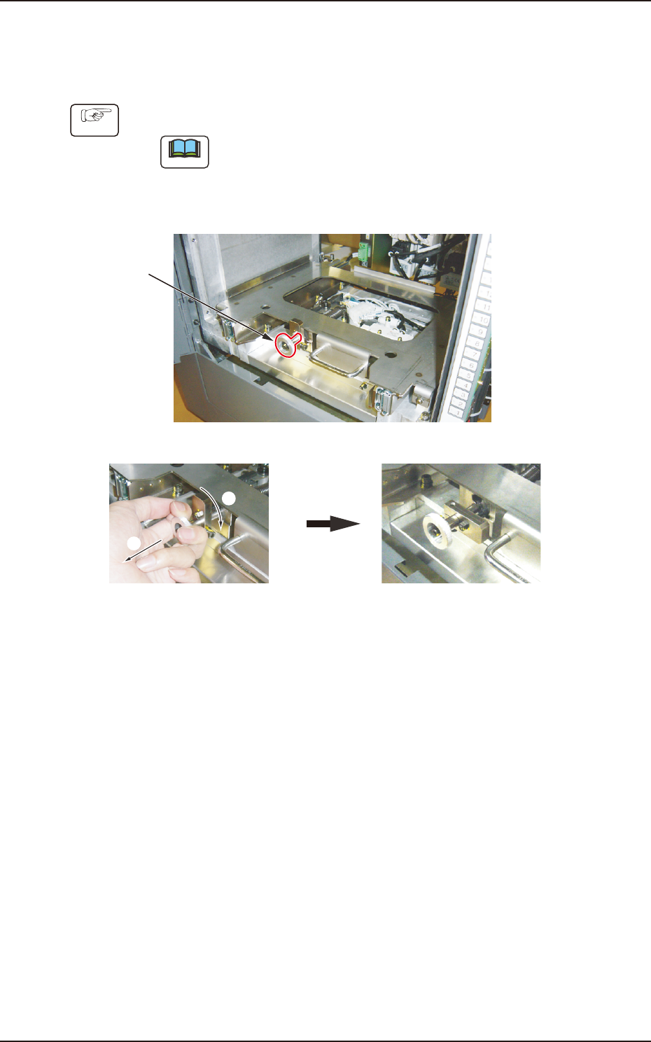 ( 储料箱更换门被电磁锁定,准备完了开关的 LED 亮灯。)