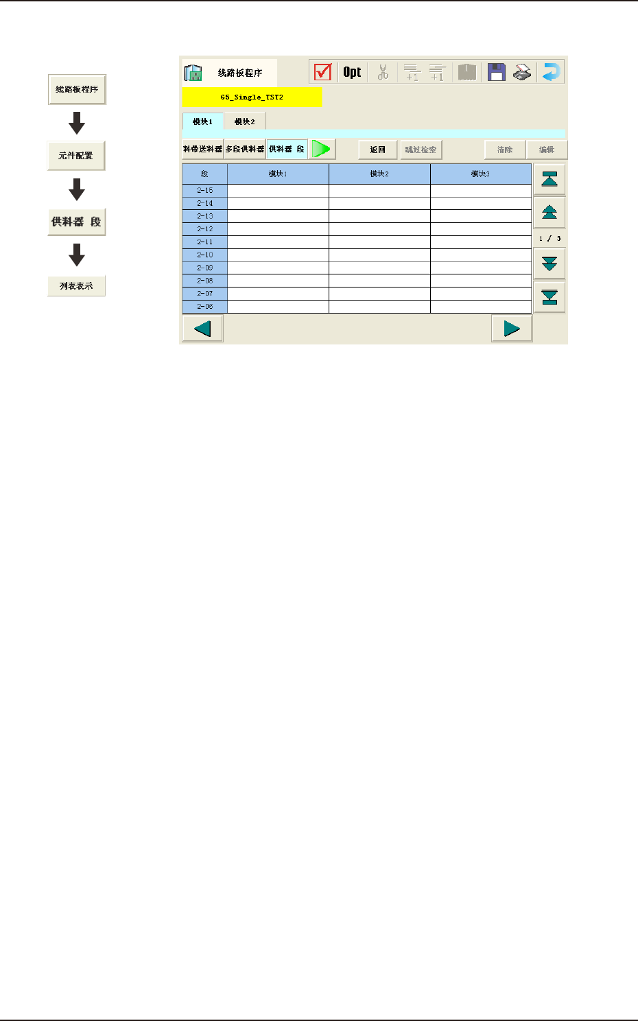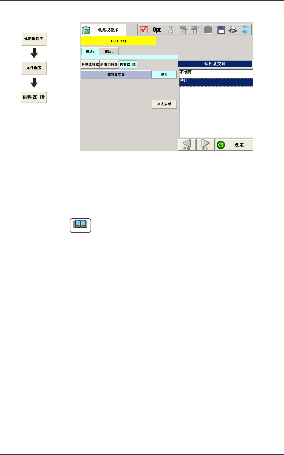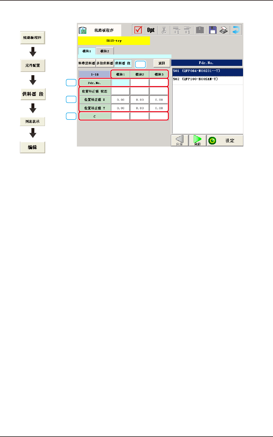 指定将多段供料器数据设定的各种元件配置到各段、各模块的何处。