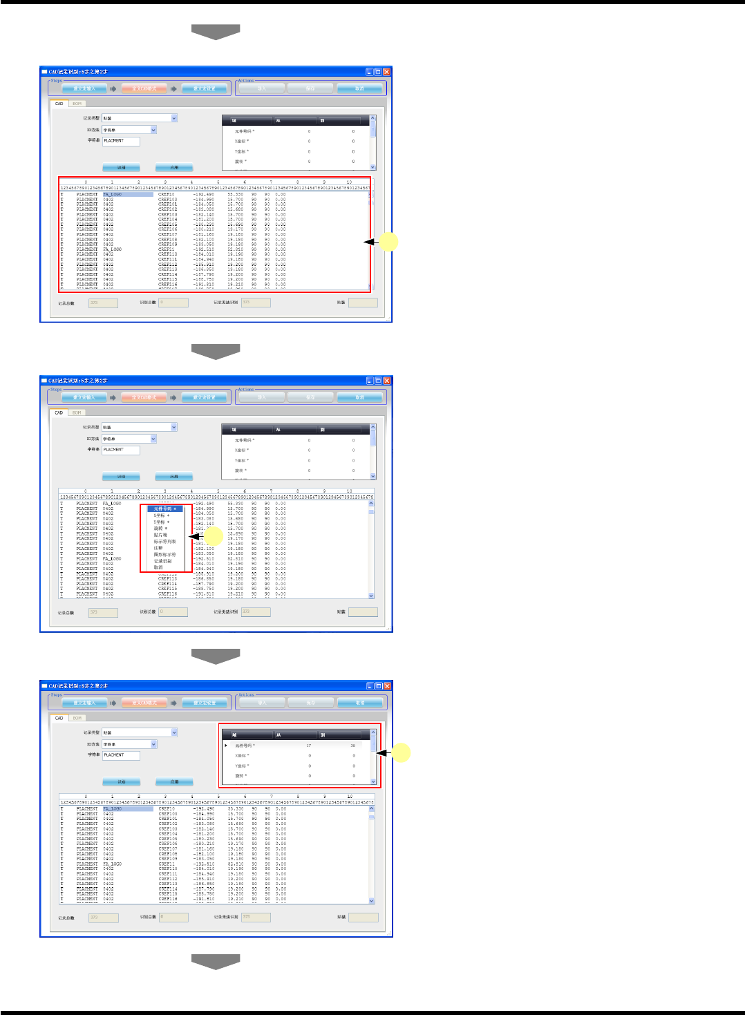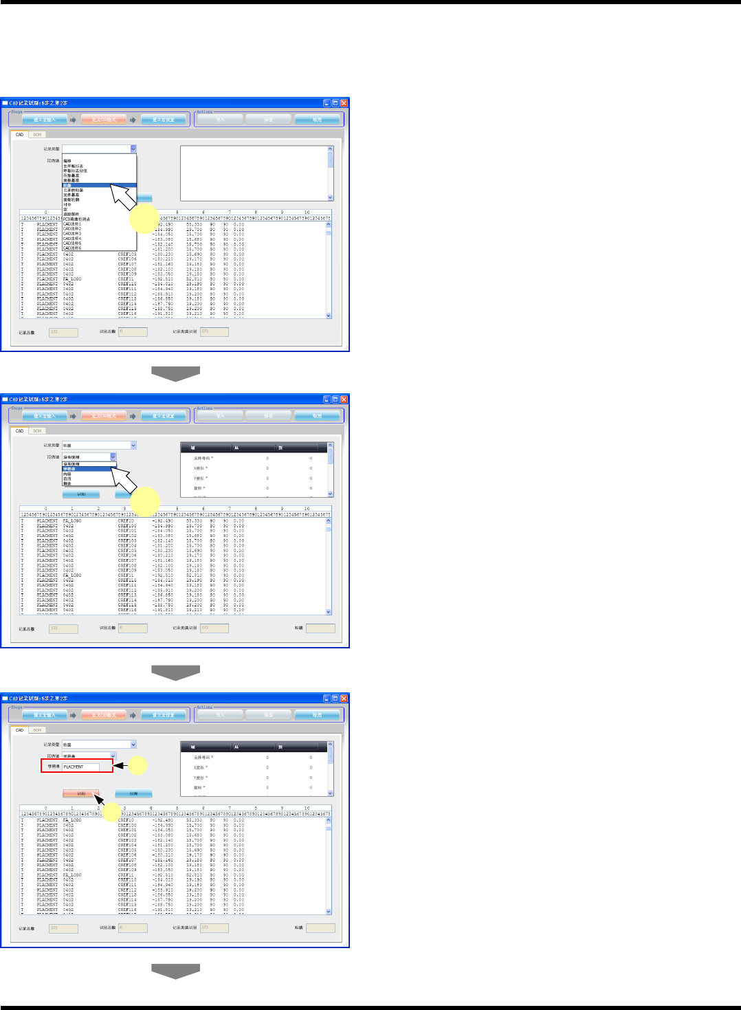 NPM-DGS 程序手册 5.2 CAD 宏的定义 EJS9AC- MB-05 P-02 Page 5- 23 3. 对字段进行定义。 • 对实装点的定义所需的字段进行定义。实装点 必须对下列所有项目进行定义。 • 元件号码 • X 坐标 • Y 坐标 • 旋转 ∗ 下列字段都是选项。 • 贴装面 • 参考号码 • 说明 • 图形识别子 从 17 位数 ~ 36 位数中收放元件名 。 以其为基 础 对元件名进行定义。 a) 单击 17 …