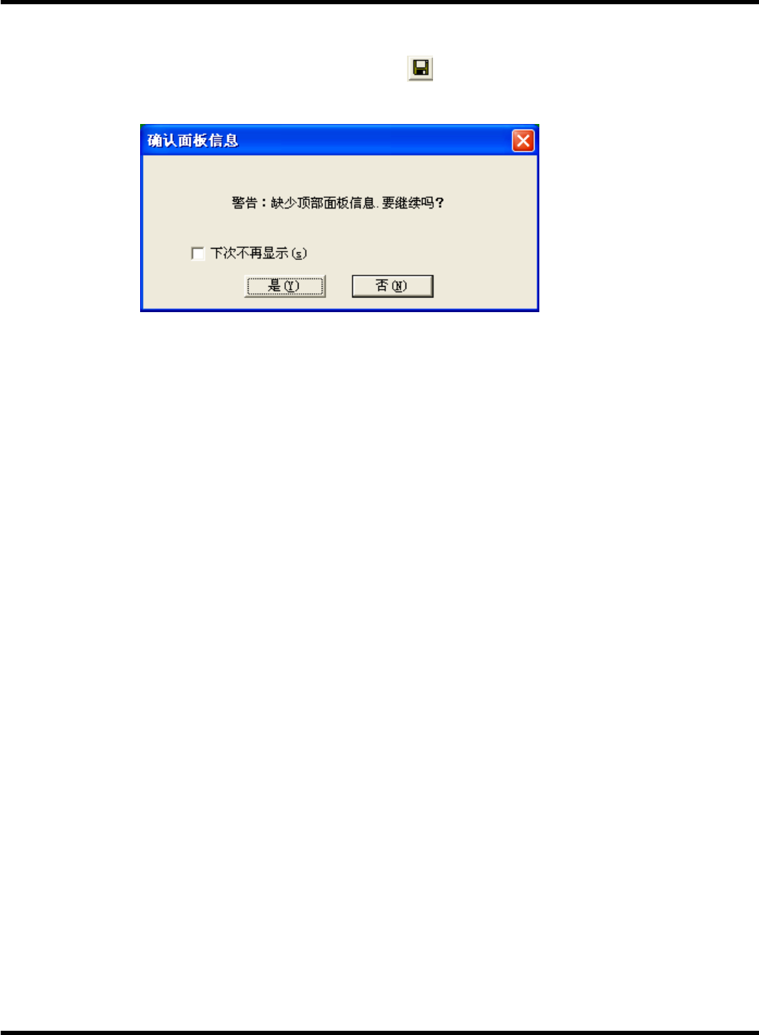 NPM-DGS 程序手册 5.5 PCB 编辑 EJS9AC- MB-05 P-02 Page 5- 67 5.5.5 PCB 数据的保存 保存已定义的 PCB 数据时,单击工具栏的 ( 保存 ) 。 结束 PCB 编辑器时,单击 < 产品编辑器 > 画面的右上的 [x] ,或者选择菜单栏的 [ 文件 ] → [ 结束 ] 。 基板尺寸未被定义时,将会显示以下画面。 选择 [ 是 ] ,继续进行结束处理。即保存目 前的内容,…