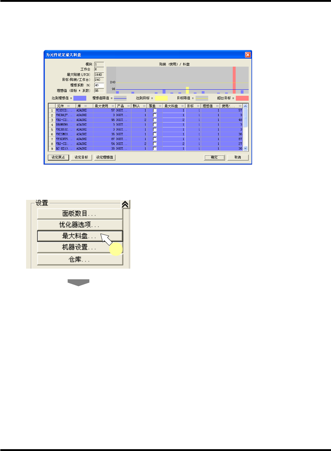 对所有元件的最多料盘数中设定目标值