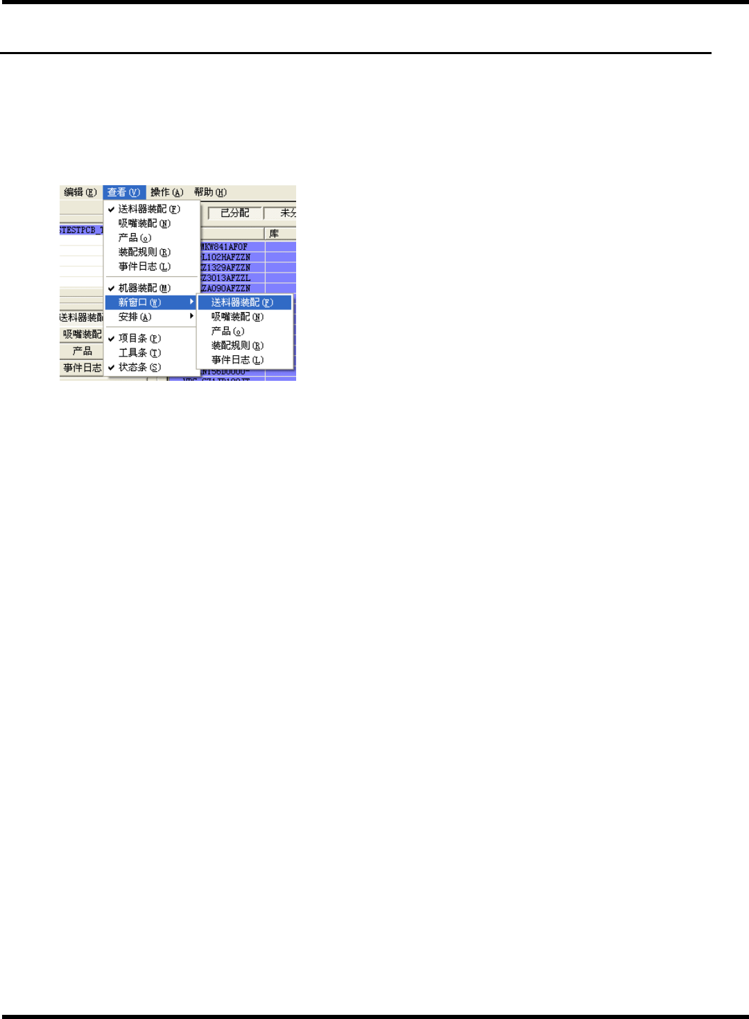 NPM-DGS 程序手册 7.10 数据编制工作的 方便的使用方法 Pa ge 7-36 EJS9AC- MB-07 P-02 7.10 数据编制工作的方便 的使用方法 可在数据编制工作中根 据必要打开复数视图 画面,并列显示。使 用在如下所示情况 的话,很方便。 同时确认送料器装配画 面和吸嘴装配画面。 打开 2 个送料器装配画面 ,在分散设置的机 器之间进行元件的移 动和拷贝。 从新添加打开视图 画面 1. 选择菜单栏的…