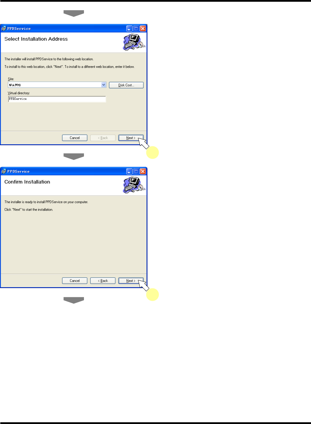 NPM-DGS 程序手册 1.3 网络的设定 EJS9AC- MB-01 P-02 Pa ge 1-35 1.3.2 PPD 服务的安装 PPD 服务是一种 WE B 服务, 其内容有 : 显示通过 DGS 所制作的生产数据一 览、 将其下载到 LNB 等、通过 LNB 等进行编辑 的生产数据的更新处理 。 1. PPD 服务的安装 1. 通过资源管理器启动 CD-ROM 的 ‘PPDServ ice.msi’ 。 2. 点击 [Nex…
