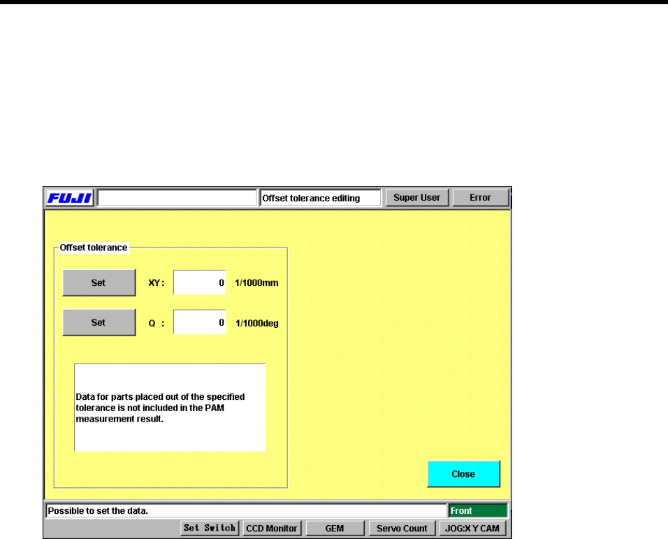 tolerance] to display the following screen. The offset tolerances can be set at this screen.