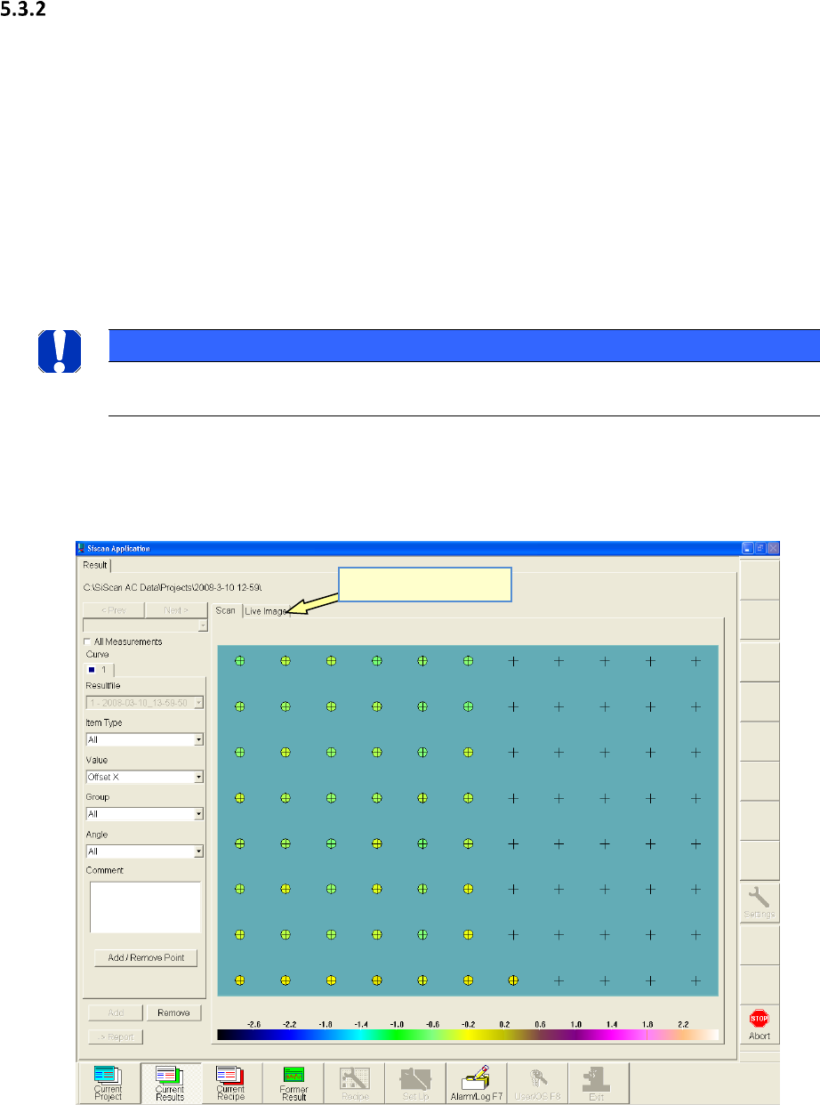 ASM AVS - B EDIENUNGSANLEITUNG S EITE 125 VON 182 5.3.2.2 »Current Results« nach einer Messung: Nac h A bschl uss der M e ssun g w ird der Reit er »Liv e Im age « e ntfe rnt. Stat tde ssen kom me n sec hs neue Reite r hi…