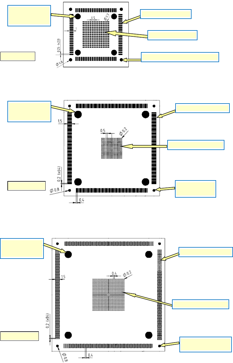 Auf der Unterseite dieser Bauteile sind folgende Strukturen aufgebracht.