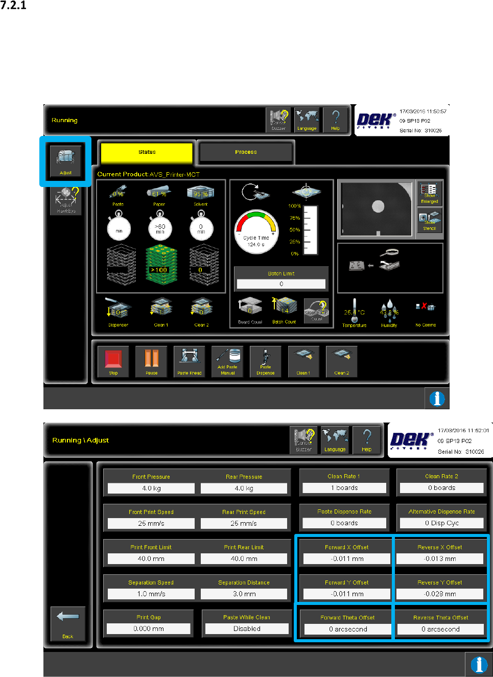 7.2 Offset-Korrekturen an DEK Druckern