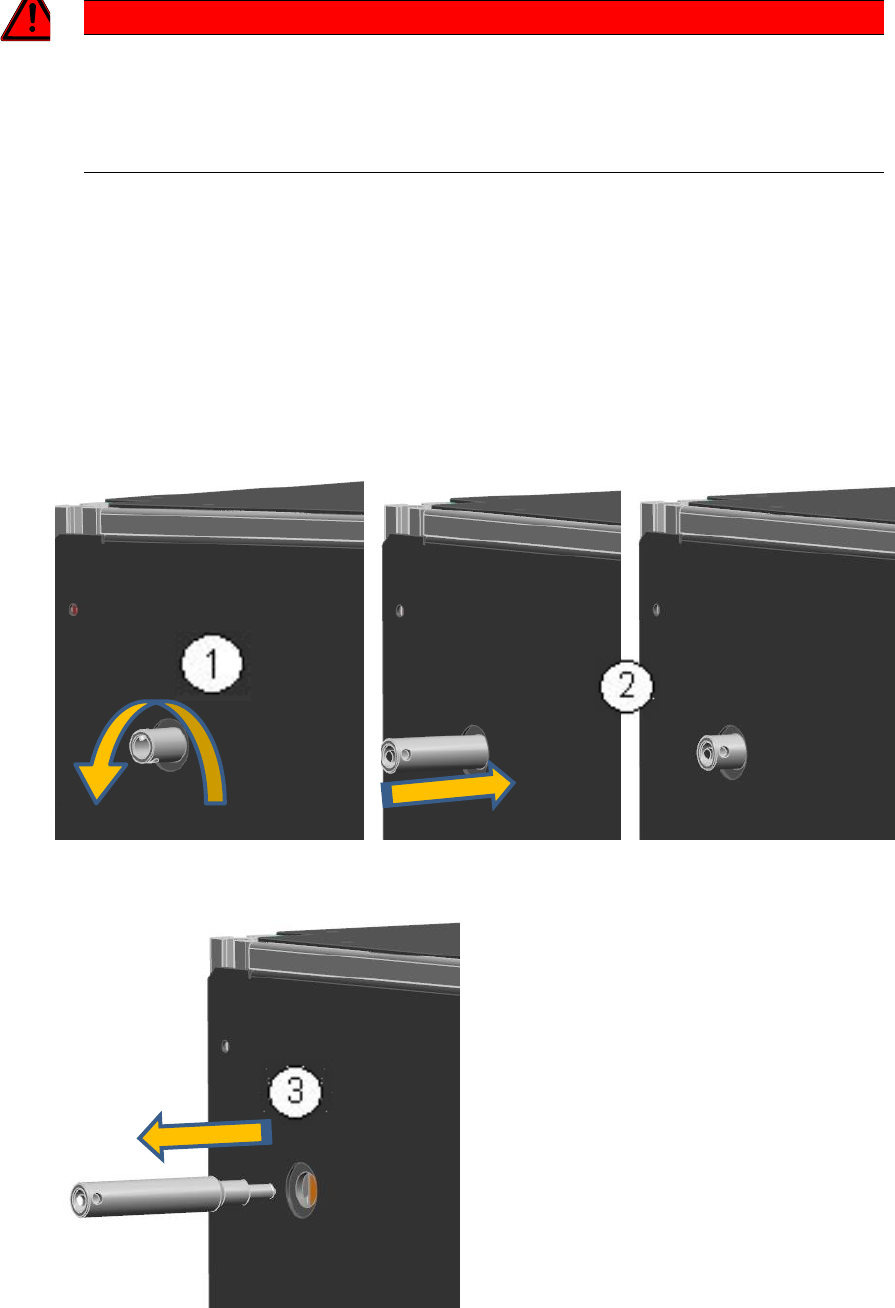 Die Transportsicherung muss vor dem Einschalten des Gerätes entfernt werden, da die Achsen nach dem