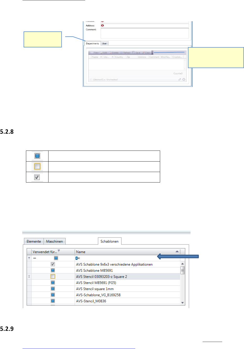 Die Checkboxen in den Auswahl-Tabellen haben 3 Status.