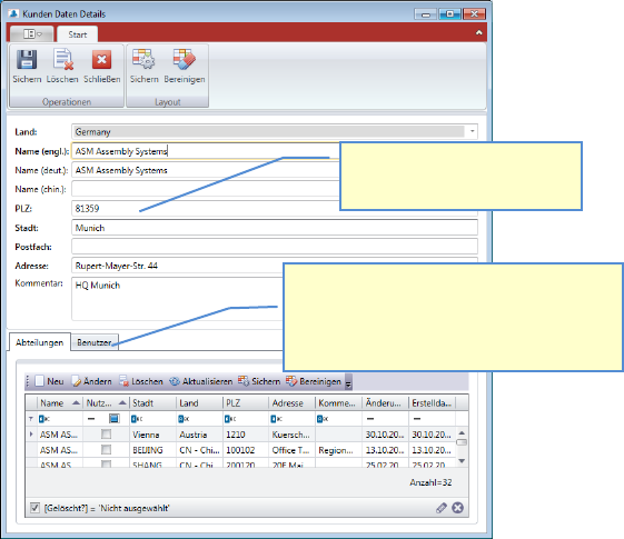 Es erscheint eine Liste, mit allen Abteilungen dieses Kunden in der Datenbank.