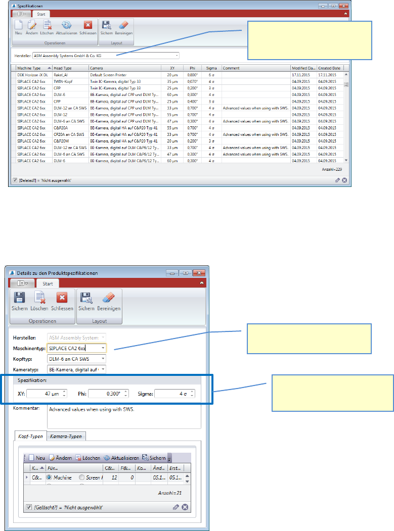 Klicken Sie auf “Neu”, um eine weitere Spezifikation in die Datenbank aufzunehmen.
