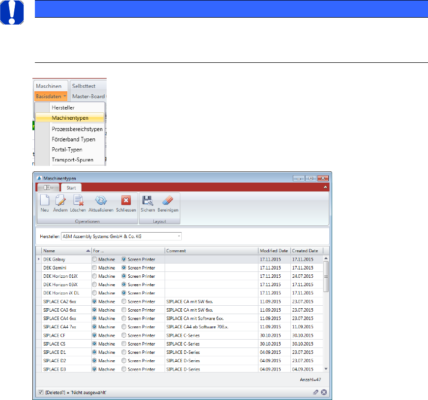 ASM AVS - B EDIENUNGSANLEITUNG S EITE 65 V ON 182 5.2.18.10 Basisdaten – Maschinentypen Unt er M asc hine ntype n wer den all e mö glic hen K onf igura tio nen eine s Ma schin enty ps dar ge- ste llt . Da zu m üssen vor …