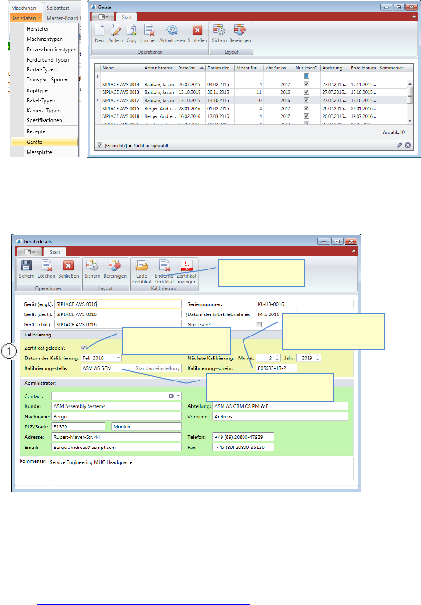 Es ist auch notwendig, sogenannte Geräte-Daten für jedes ASM AVS Gerät abzuspeichern.