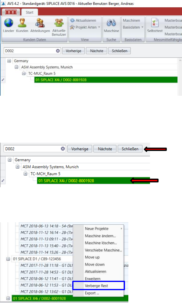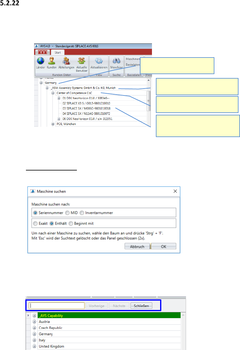 ASM AVS - B EDIENUNGSANLEITUNG S EITE 79 V ON 182 Nav igat ion zu r SI PLAC E Ma sch ine Um die M asch ine zu fin den, welc he Sie me sse n wo llen , g ibt e s 3 v ers chie dene We ge. 1. Navi gati on über de n Str uktu …