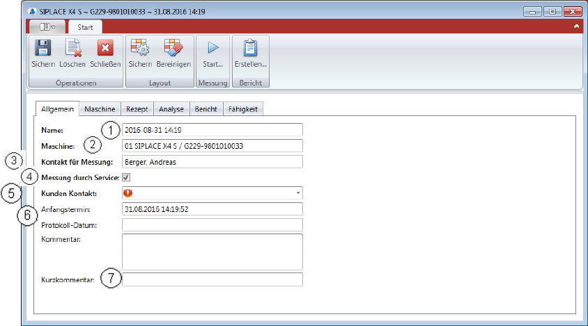 wird die Messung durch den Service durchgeführt, muss hier ein Kontakt beim Kunden