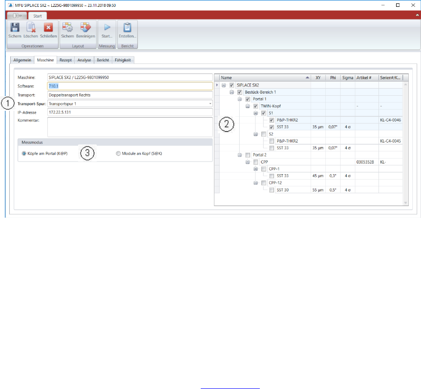 z.B.: 01 SIPLACE SX1 / M008G-98010024 (Pos. in der Linie, Maschinen Typ, Serien Nr.)