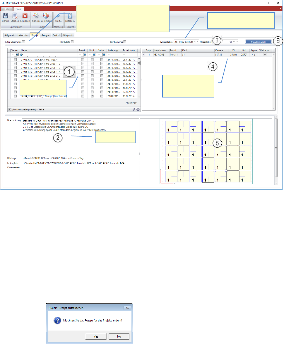 In diesem Schritt wird das Rezept ausgewählt, welches für die Messung verwendet wird.