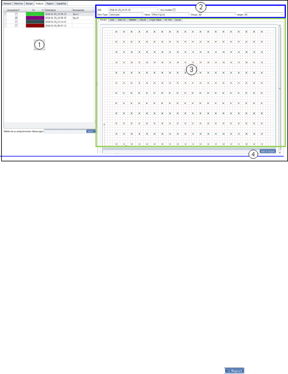 Die Ansicht “Analyse” besteht aus 4 Bereichen: