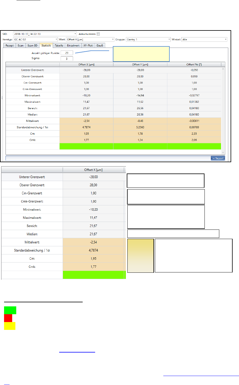 ASM AVS - B EDIENUNGSANLEITUNG S EITE 94 V ON 182 Durchschn itt aller Wert e Standard Abwei chung Cm Cmk d. Stat isti k: Zei gt d as E rge bnis der selek tier ten M ess ung, ab hängig vo n de n Fil tere i ns tel lunge n …
