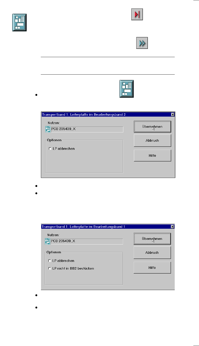 Leiterplatte nur im Bearbeitungsband 1 bearbeitet werden soll und dann
