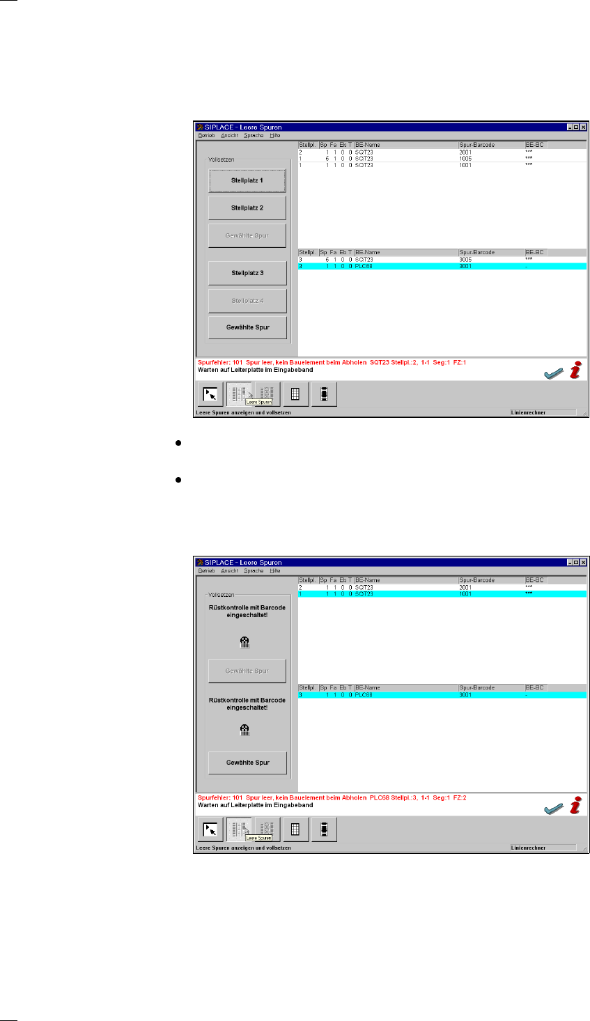setzen. Spuren ohne BE-Barcode sind in der Spalte BE-BC mit einem