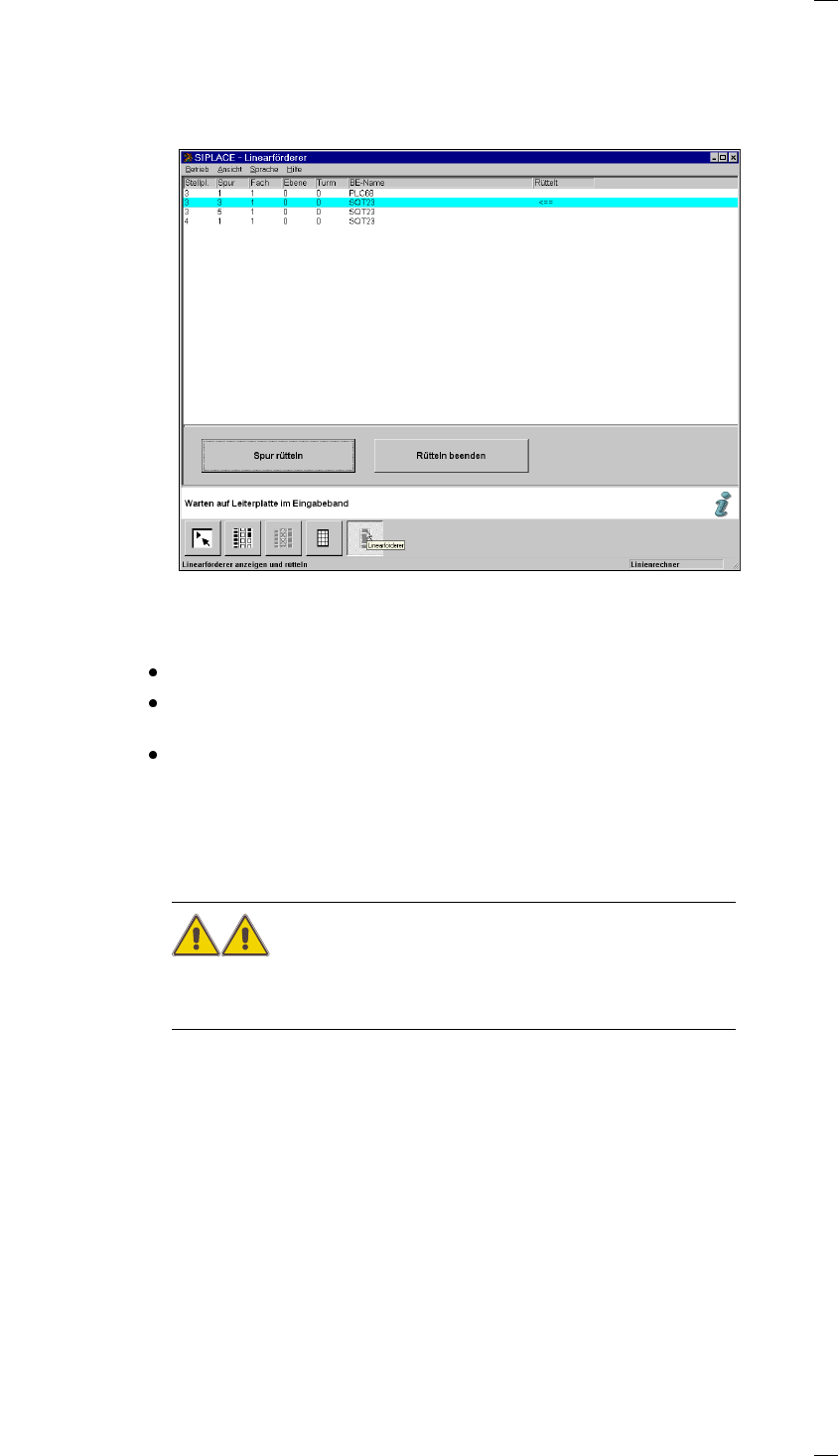 Menü Linearförderer anzeigen und rütteln