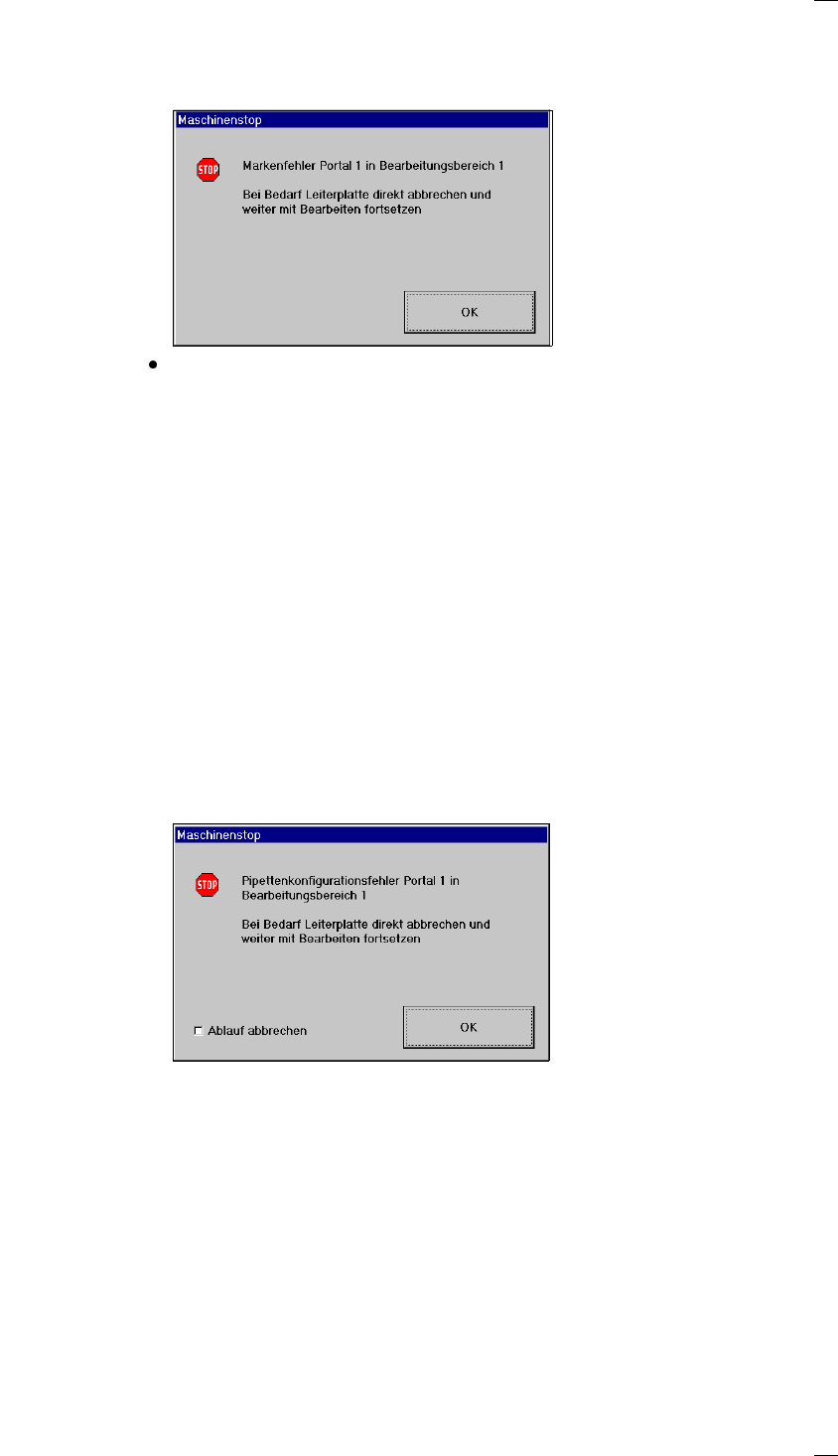 Bei Maschinenfehlern wie zum Beispiel Achsfehlern hält der Automat an.