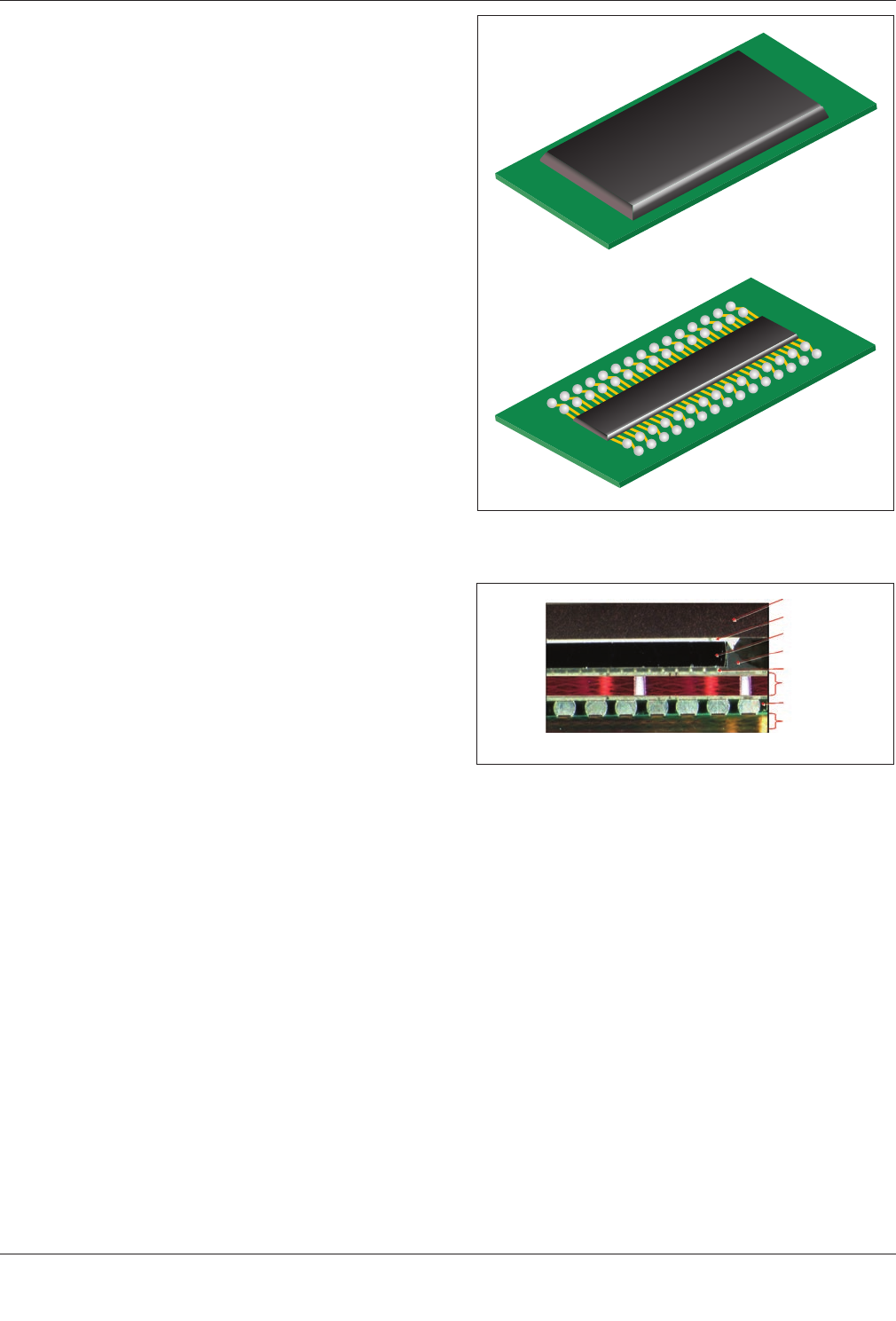 介电载体的下方是金属球阵列图形,它形成了从封装本体到配接特征(如,印制板)的机械和电气连接。含有