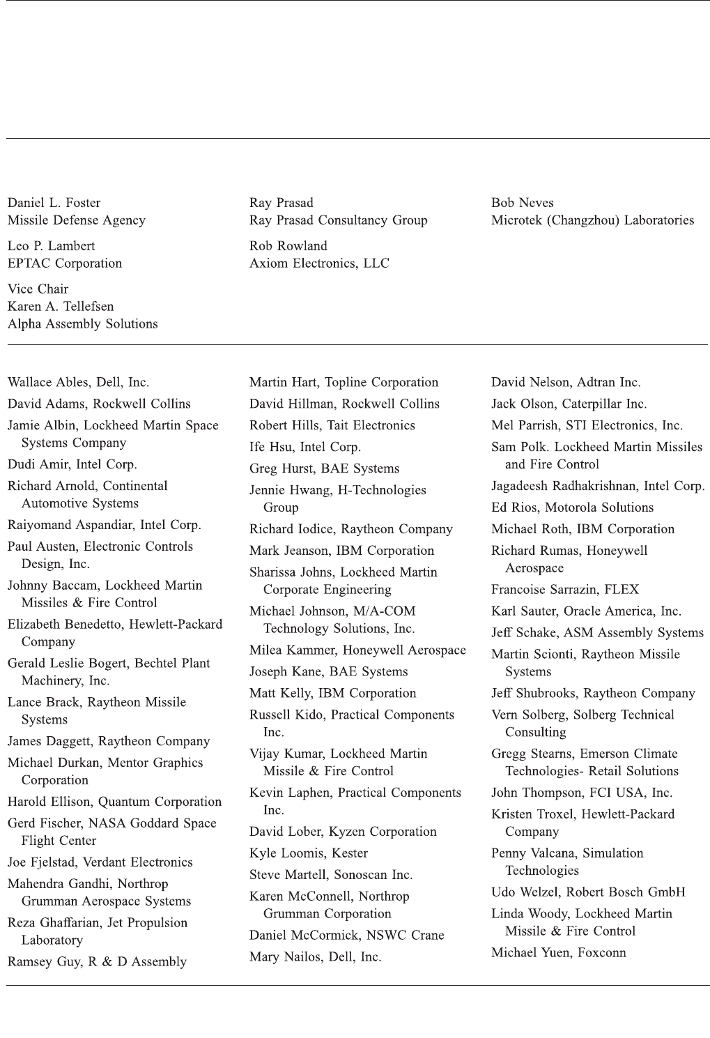 单位,下面仅列出了 IPC 组装 & 连接工艺委员会(5-20)下的 IPC 球栅阵列工作组(5-21f)的主要成员。