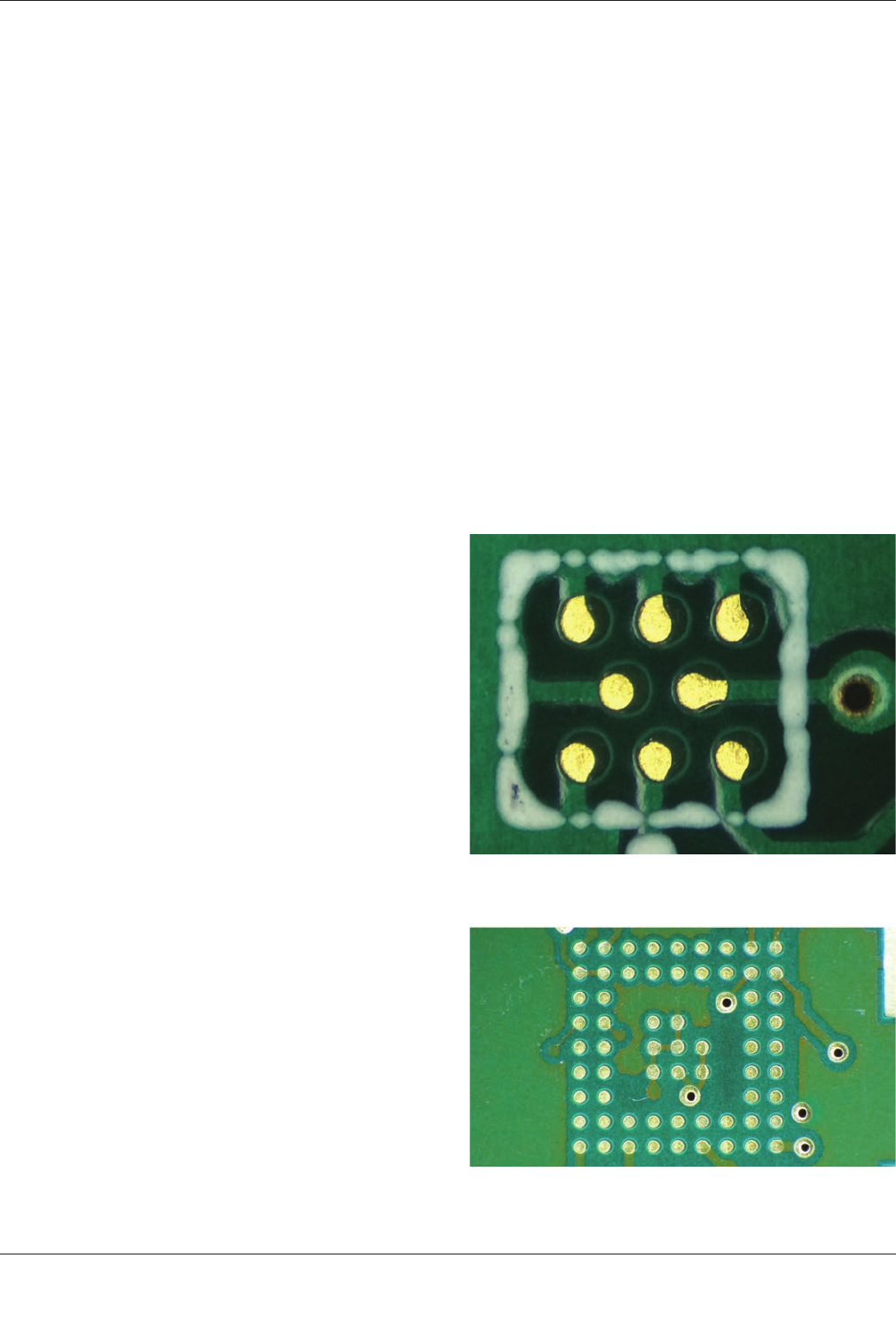 图 6-8 和图 6-9 显示了阻焊膜定位质量的对比示例,图
