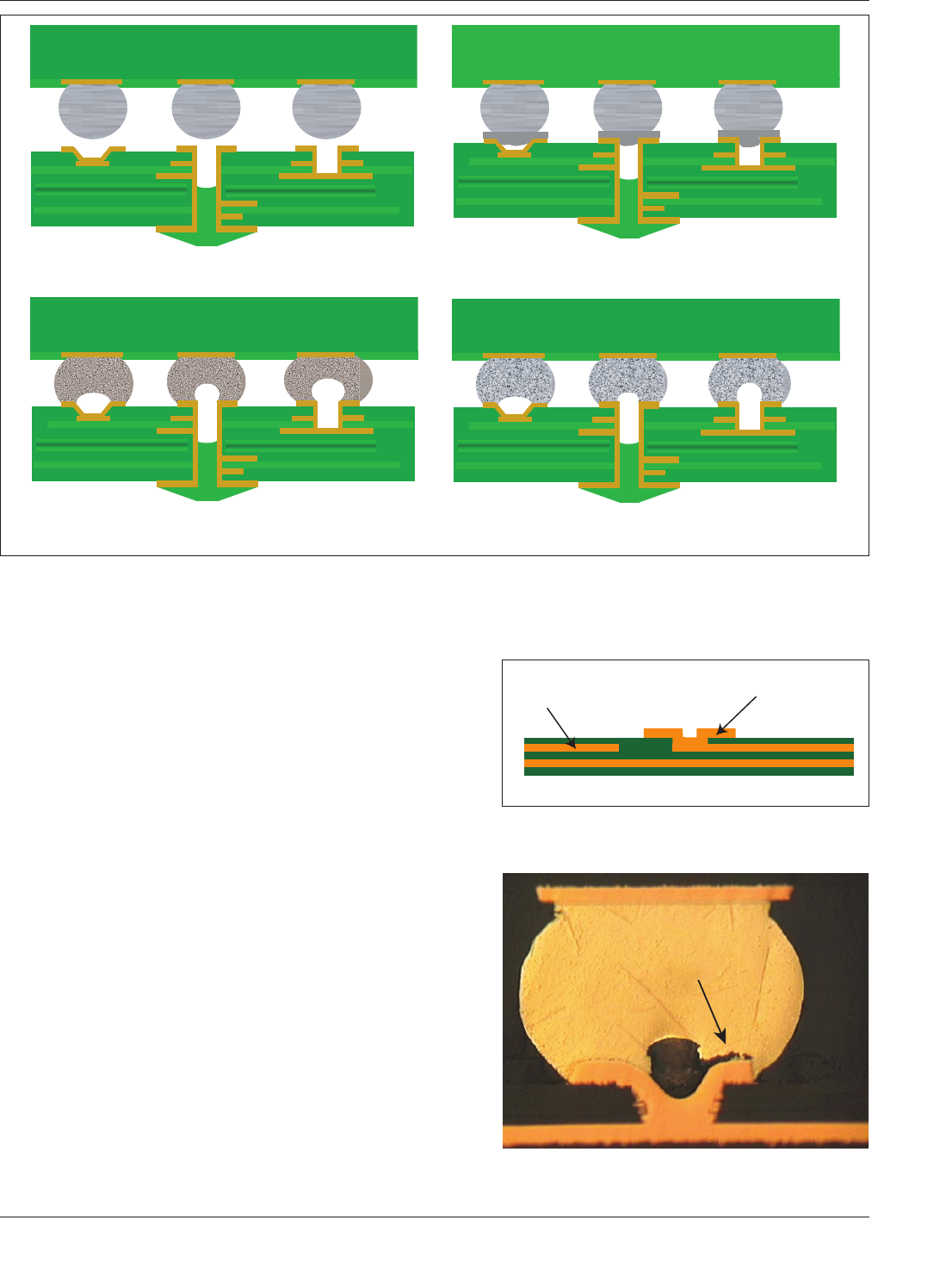 膏下并在再流焊过程中在焊球内形成空洞。对于带有微导通
