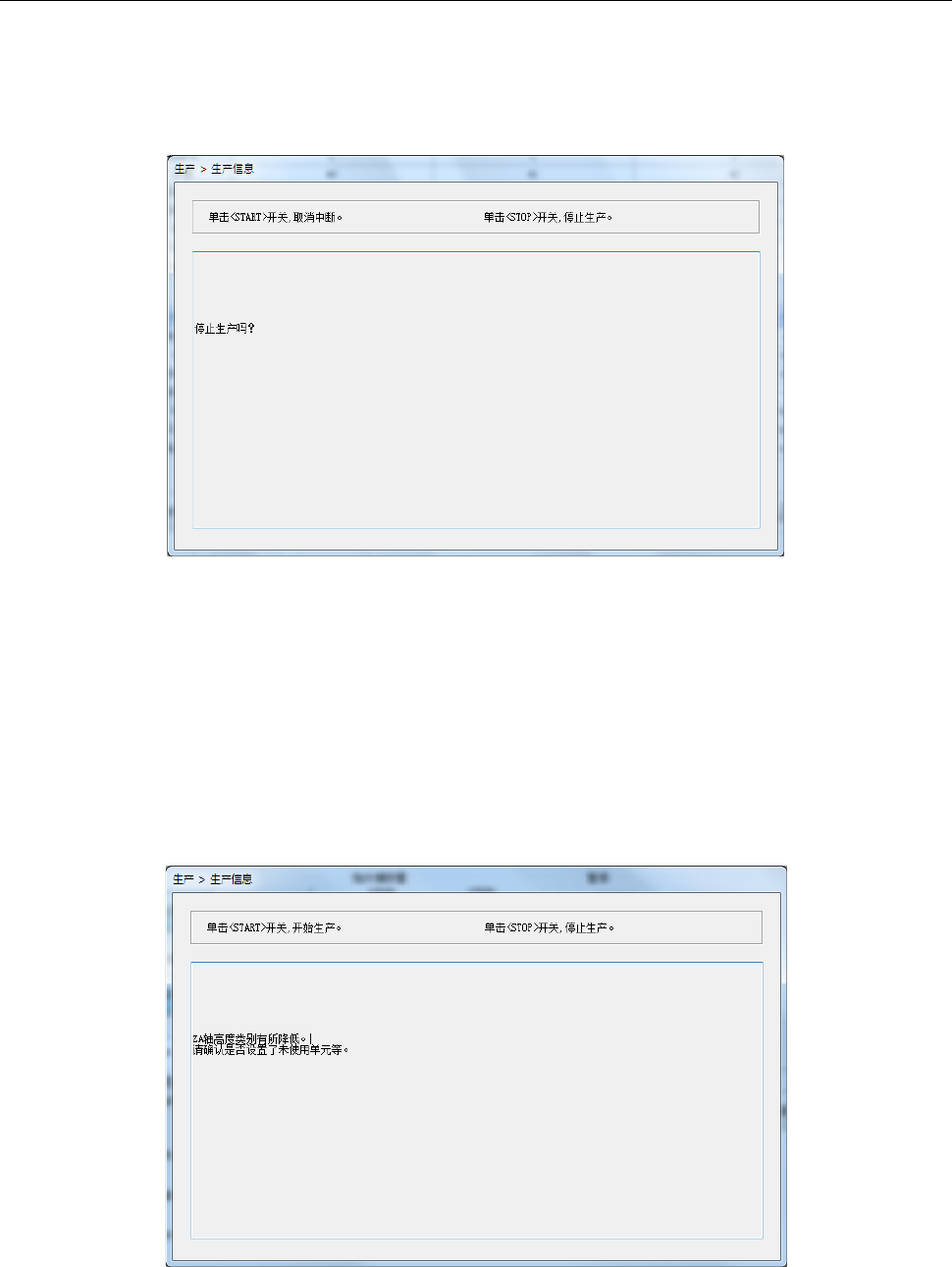 当生产开始时ZA轴在3mm高度上运行时,将显示通知信息。请仔细确认没有未使用的装置等对