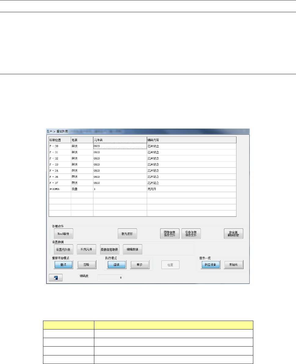 显示贴片失败的贴片数据的列表。