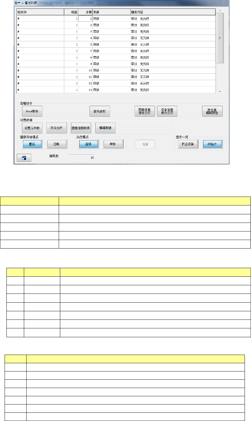 第 1 部 基本篇 第 2 章 生产 2- 81 (2) 重试列表(未 贴片) 除列表显示的内 容以外,其他项 目与供应装置 相同。 1) 显示一览 ( 未贴片 ) 按发生顺序显示 错误。 项目 内容 贴片 ID( 元件 ID ) 显示贴片失败的 元件 数据的元件 ID 。 电路 显示贴片失败的 电路号。 步骤 显示贴片失败的 贴片步骤。 包装 显示 吸取失败 的元件包装方式。 错误内容 显示 贴片失败的原 因 。 2) 错误内容 ( …