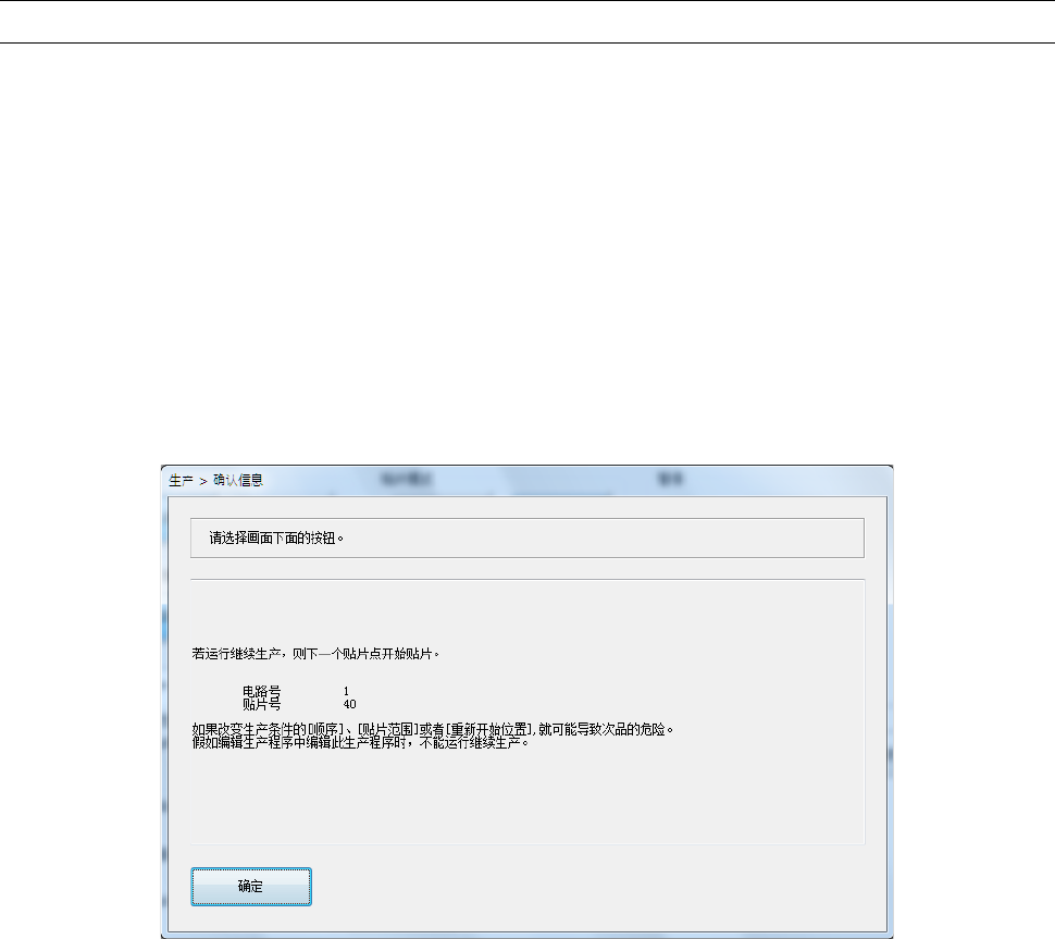 下一次生产开始时,会显示询问是否从作为继续生产数据的记录位置重新开始生产的确认提示信息。