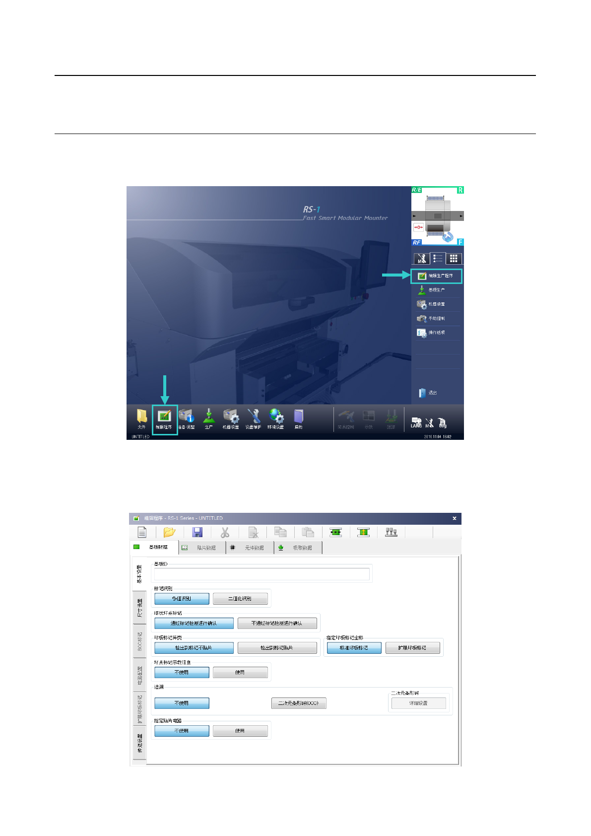 新建程序时,程序名为UNTITLED,基板ID显示空白。