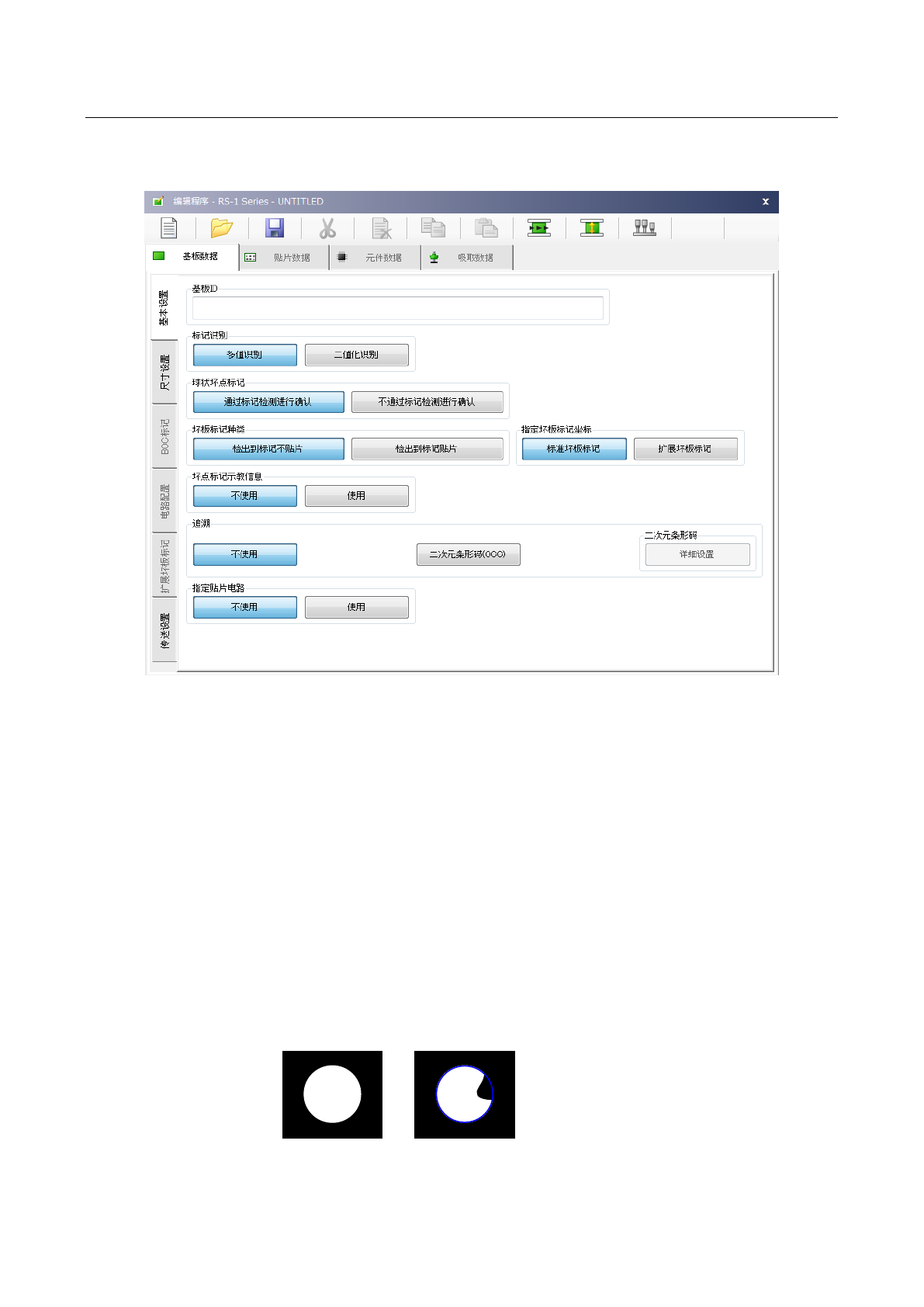 第 1 部 基本篇 第 4 章 制作生产程序 4- 10 ◆ 二值化识别: 当多值识别发生 错误时,请选择 二值化识别。 但当标记边界拍 摄不清晰时,其 精度要低于多 值识别。 3) 球状坏点标记 (全坏板标记) 设置检测出全 坏板标记时是否 进行坏板标记 识别。 4) 坏板标记种类 设定检测出坏板 标记时的贴片动 作。 ◆检出标记时不 贴片: 如果检出标记时 不进行贴片动作 ,请选择此项 。 ◆检出标记时贴 片: 如果检出标记时 要进…