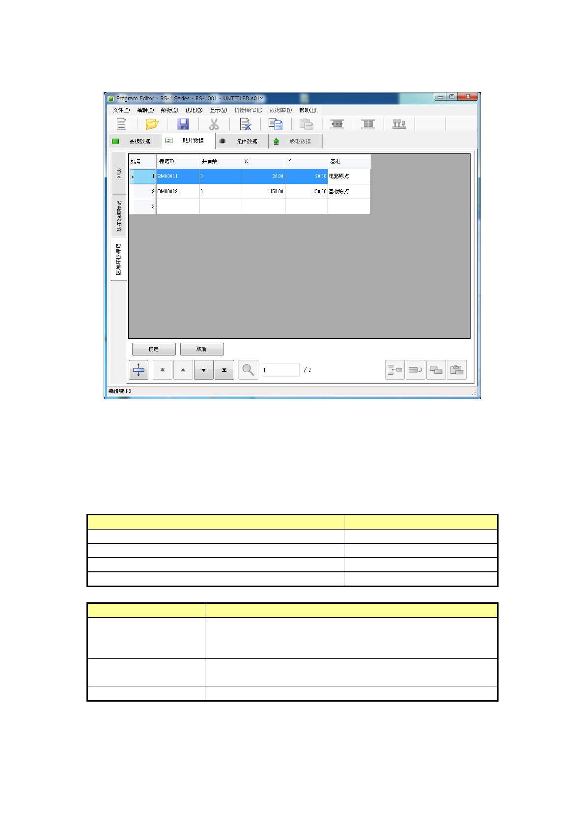 要注册新的标记时,使光标移动到未输入的行,输入标记的 X 坐标、Y 坐标、基准。