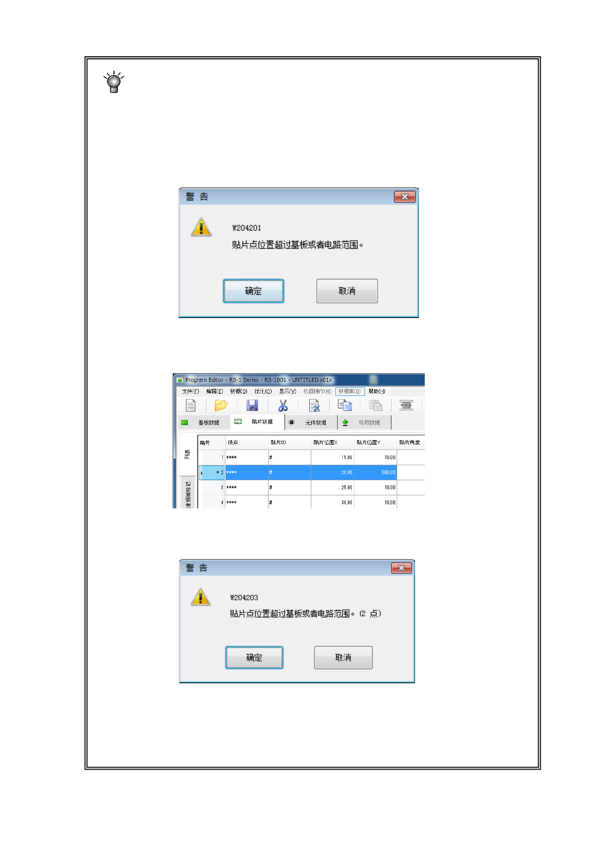 在输入贴片位置 X 或 Y 时,或分别进行了改变时,将进行范围检查。