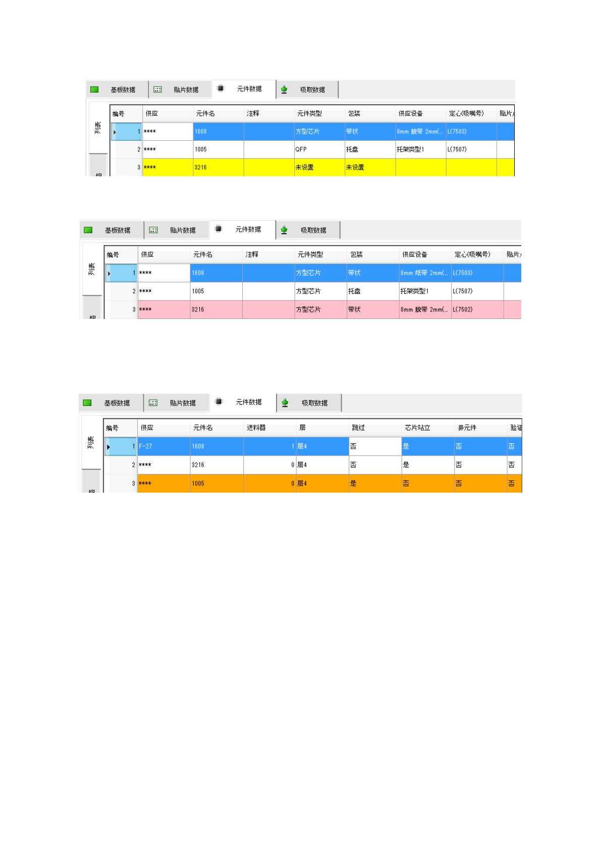 「元件数据」,是针对在「贴片数据」中输入的“元件名称”输入详细的信息数据。