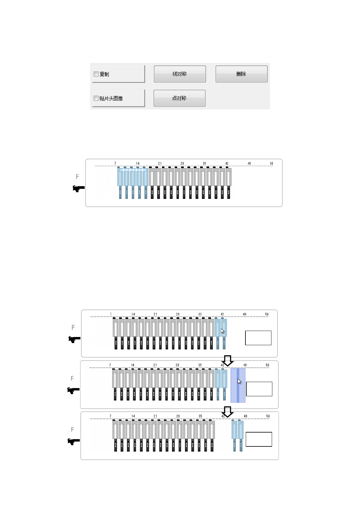 当选择前面的送料器时将移动/复制到后面,选择后面的送料器时则把送料器移动/复制到前面