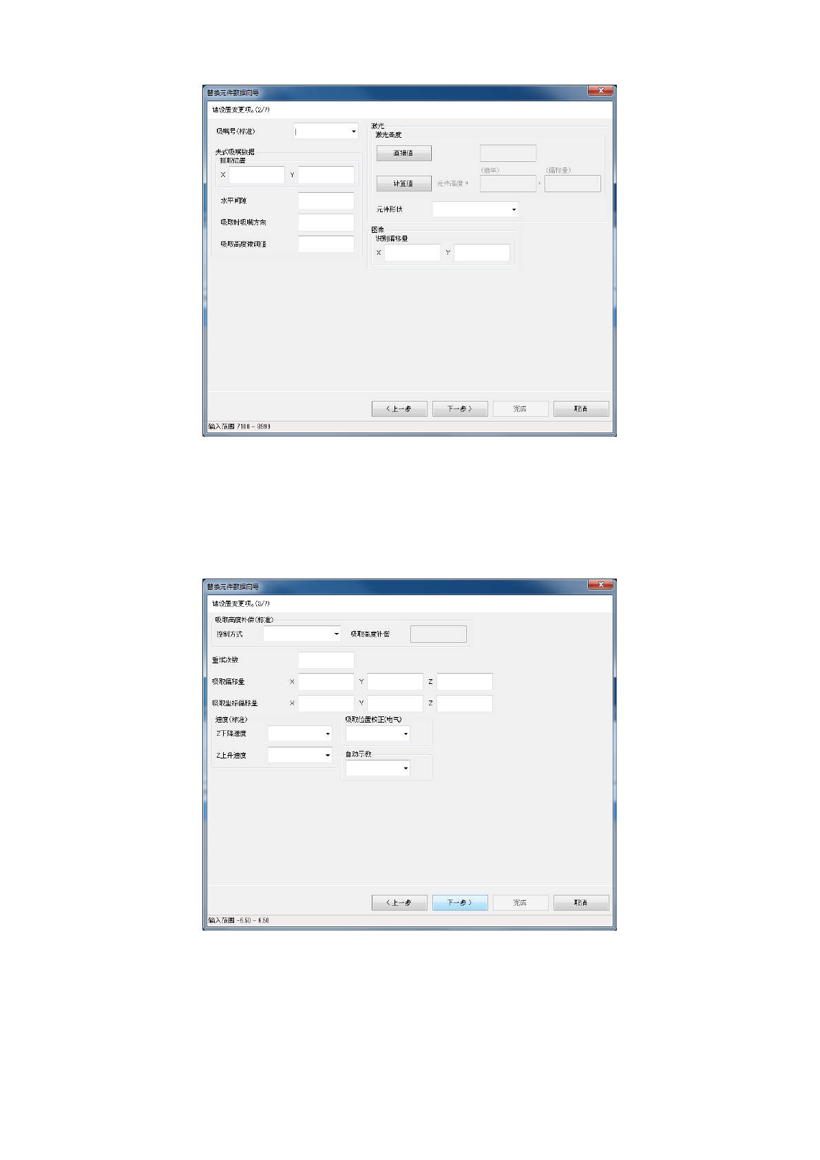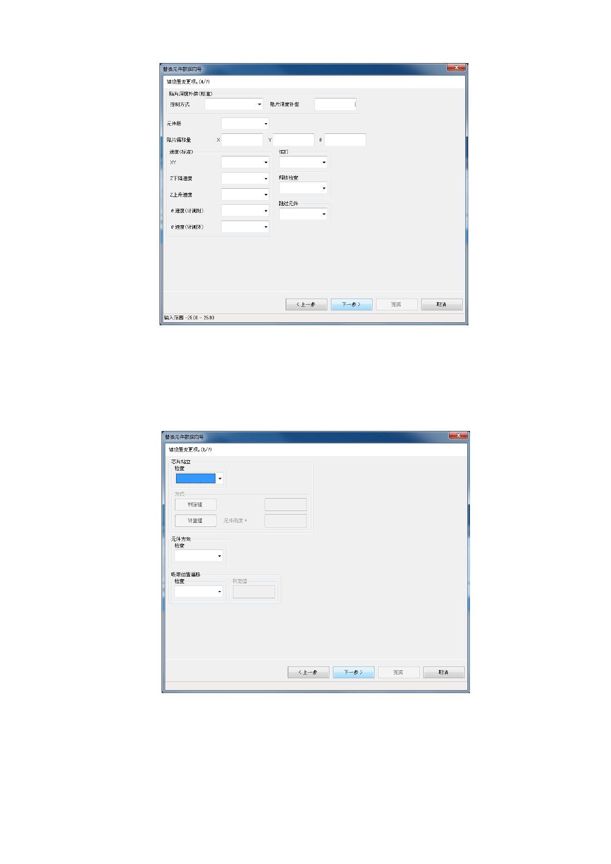第 1 部 基本篇 第 4 章 制作生产程序 4- 153 显示元件数据的 贴片条件选项卡 的内容。 输入要变更的各 相关数据数值。 在对话框的下部 会显示输入范围 。 按 [ 上一步 ] 按钮返回到前一个画 面。 按 [ 下一步 ] 按钮转移到下一个画 面。 按 [ 取消 ] 按钮中断 处理,关闭 对话框。 显示元件 数据的检查 1 选项卡 的内容。 输入要变更的各 相关数据数值。 在对话框的下部 会显示输入范围 。 按 [ 上一步 …
