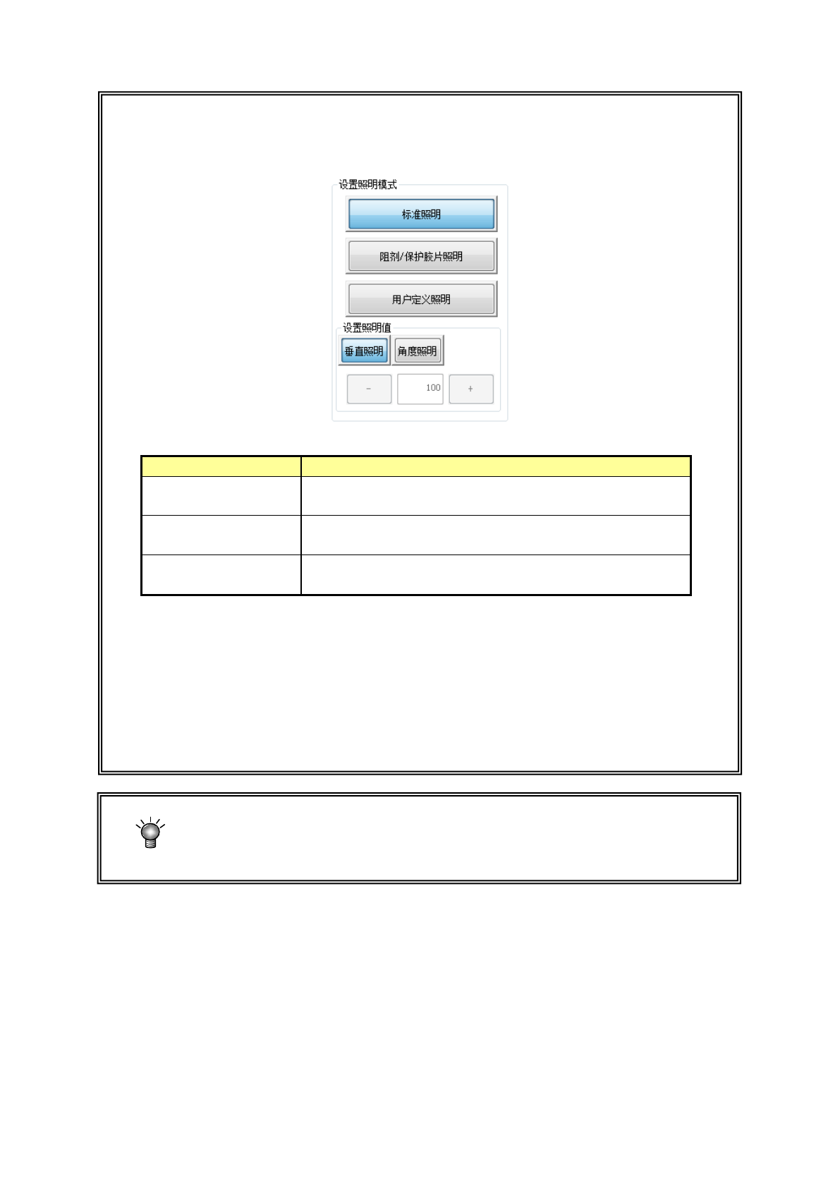 请选择[角度照明]或[垂直照明]按钮,在编辑框里输入数值,