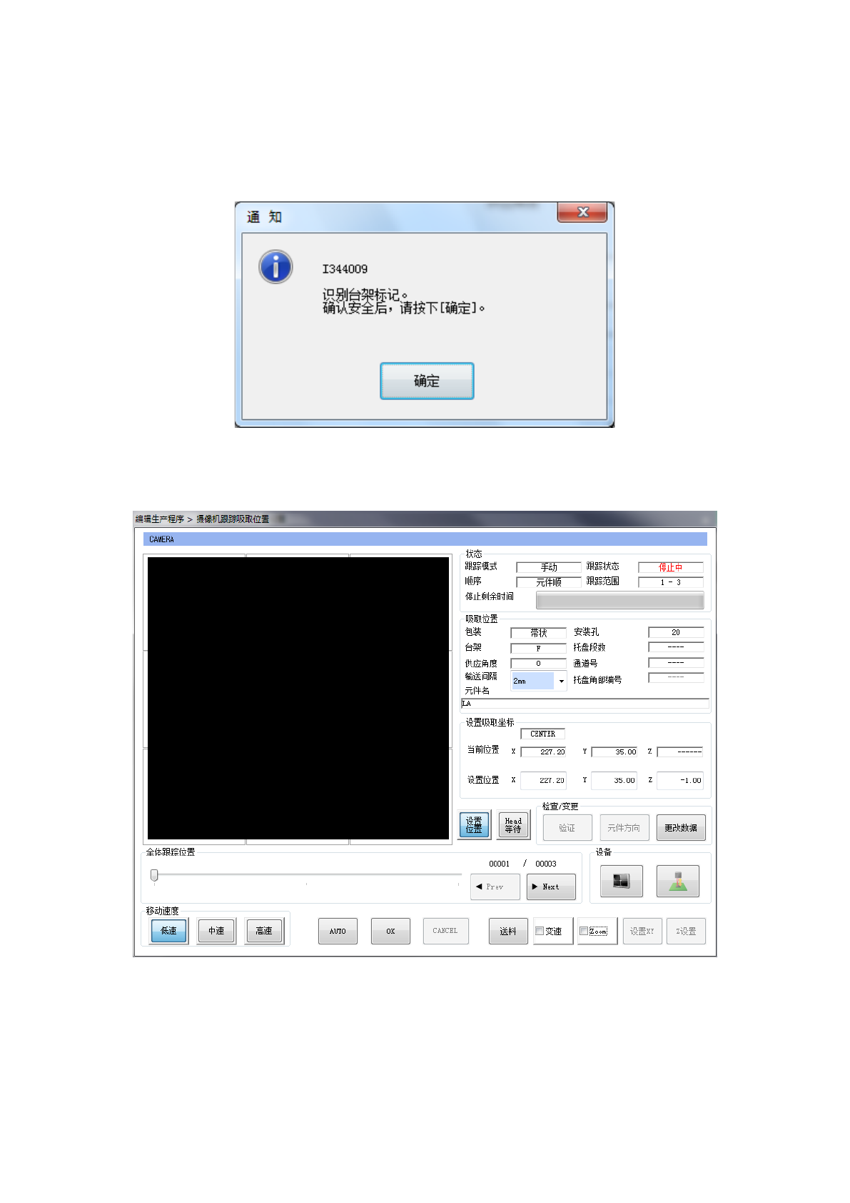 在向各供料器台架跟踪移动前,如果已设置了台架标记识别,为了提高吸取位置的精度,将执行台