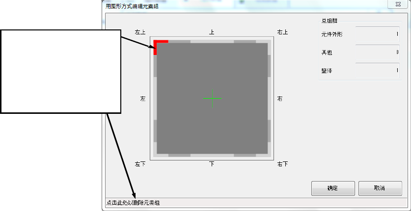 第 2 部 功能详解篇 第 6 章 通用图像元件 6- 29 (2) 追加 要素 组 在角或边的附近,把 箭 头置于可追加 元素组的 位置时,对话框的下 方 会显示提示信息 。 请点击该位置。 单击 [ 确定 ] 按钮, 即 可制作 要素 组。