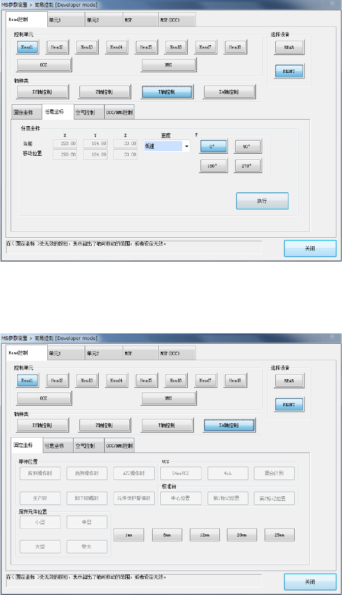 选择轴种类[XY 轴控制]、[Z 轴控制],选择「执行」后,即可把轴移至[任意坐标]的移动坐