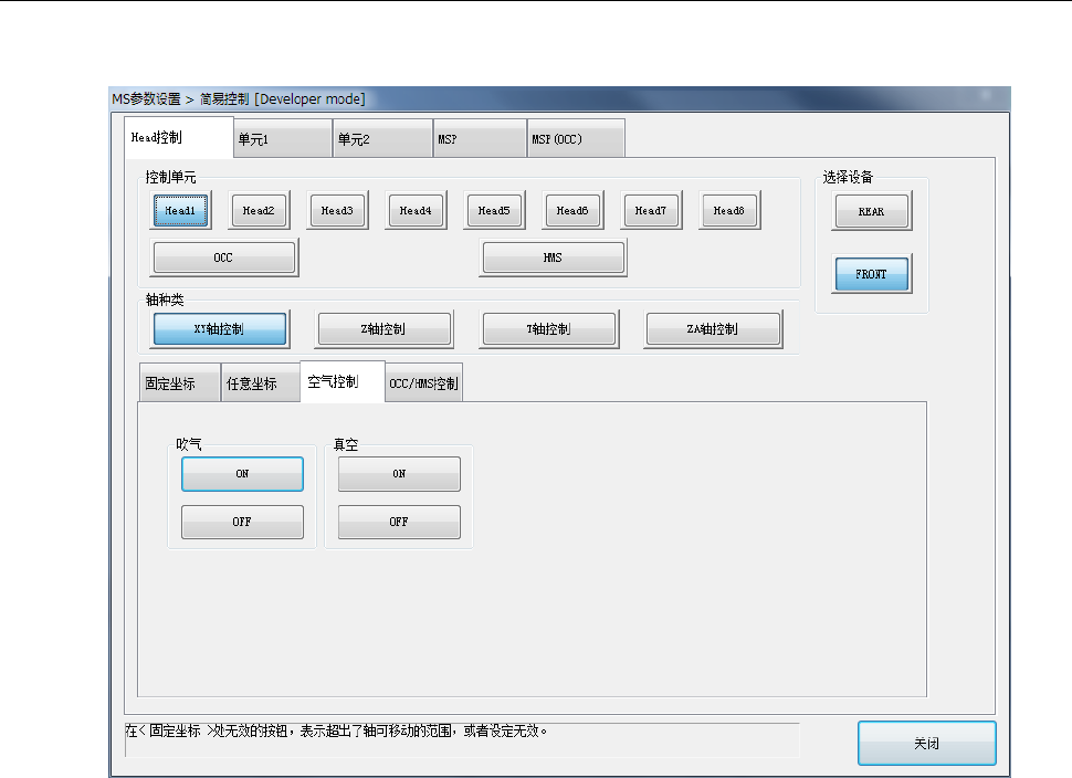 按下[ 吹气 ]、[ 真空 ]的[ ON ][ OFF ]按钮,进行控制单元中选择的 Head 的吹气控制、真空控制。
